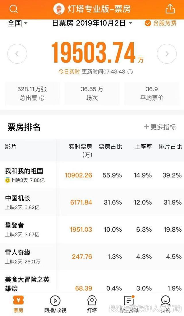 原标题:国庆首日票房:《中国机长》第二,《攀登者》第三,《哪吒》
