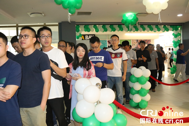 尼日利亚华侨华人、中资机构观众排队参加《我和我的祖国》阿布贾首映式。 (王新俊 摄)