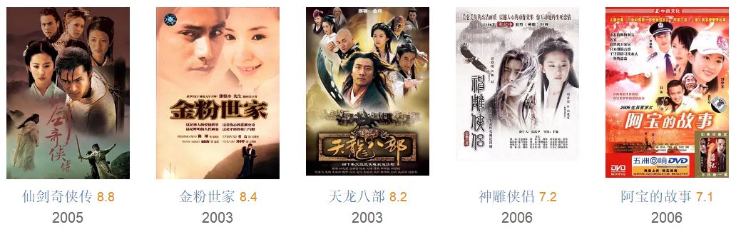 从2002年主演《金粉世家》进入娱乐圈到现在已经快20年了,可刘亦菲最受好评的五部作品却都是在刚入行那几年拍的。