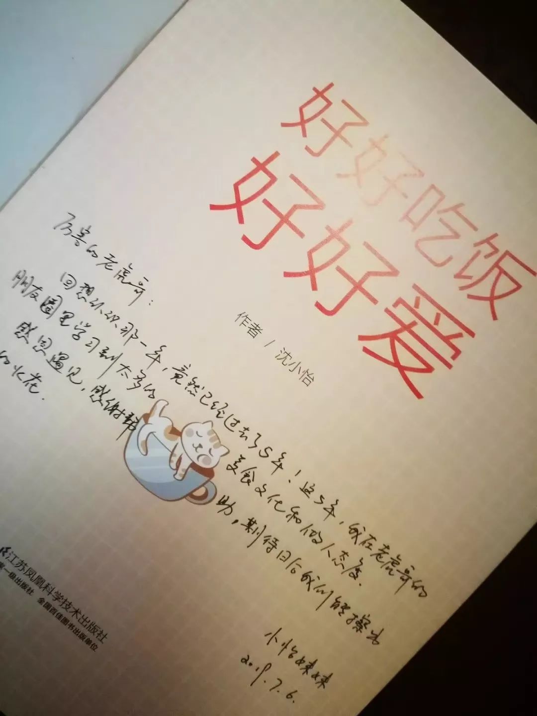 书名老虎就很喜欢。叫《好好吃饭好好爱》,这名儿,想一想就觉得美好,其实对于我们来说,我们活着,不就是为了能有有爱的人,有个家,能好好吃饭,好好地去爱吗?