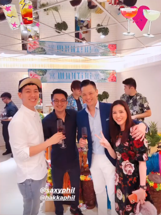 胡杏儿老公看上去心情十分不错,在宴会现场,李乘德手拿着香槟和众多前来参加宴会的好友们合影,笑容也是十分灿烂。