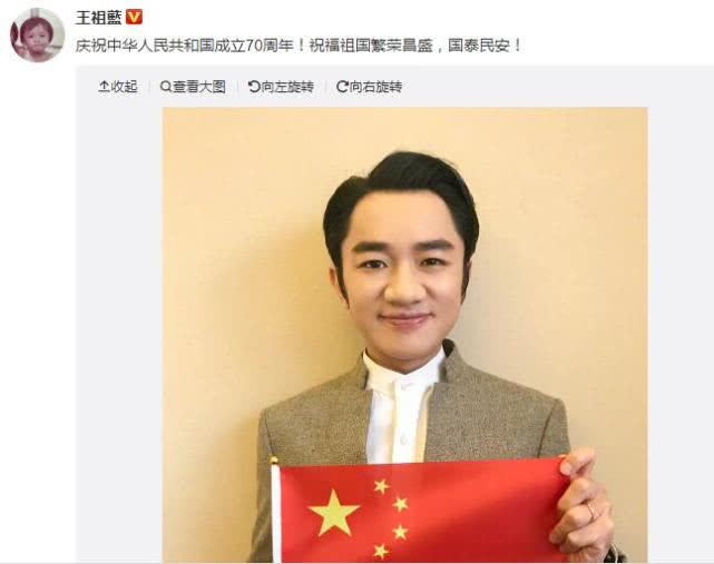 而最有趣的肯定是王祖蓝了,他的这张与五星红旗的合影怎么显得这么喜庆呢?再配上小分头,真是让人怎么看,怎么高兴