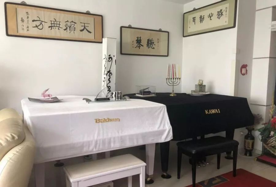 在位于河西区梅江居住区的一栋高层住宅中,宽敞的客厅并排摆放着黑白两架三角钢琴,一排展示柜被材质各异的钢琴工艺品和来自各国的纪念品填满,沙发墙最醒目的位置悬挂着一幅周总理聆听手风琴演奏的黑白放大照片……这些物件都向来访者诉说着主人的与众不同。