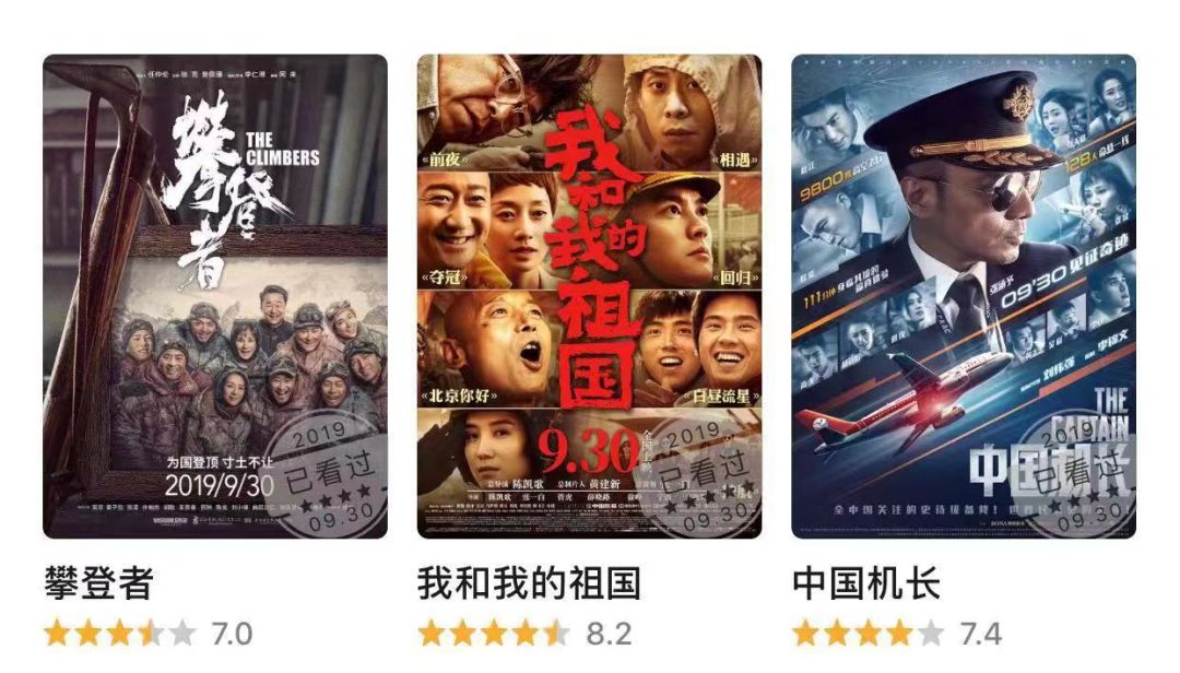 不单是票房,这也是历年口碑最出色的一届国庆档,三部影片在猫眼和淘票票平台均有9分+的表现,彼此之间难分伯仲,这也是往年从未出现过的。在主旋律和商业表达上做到了和谐统一,外加七十周年国庆的助力,这便是今年国庆档取得成功的原因。