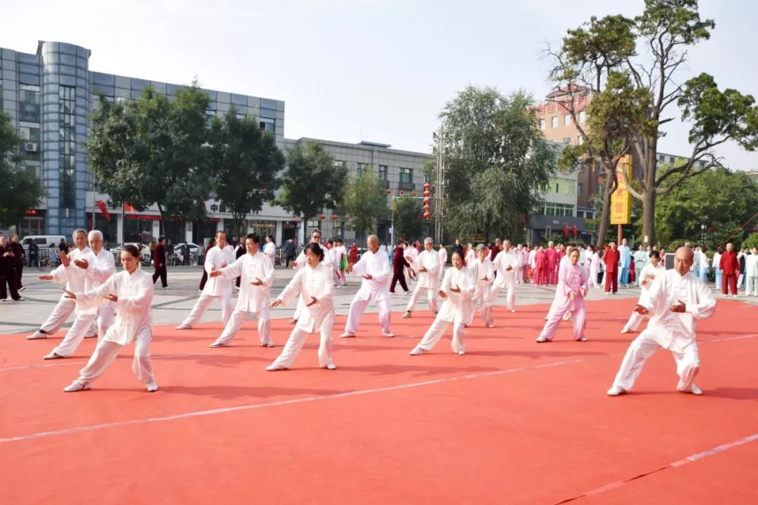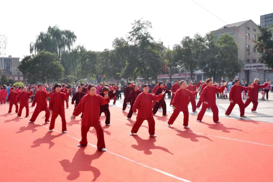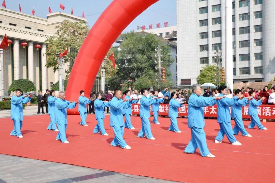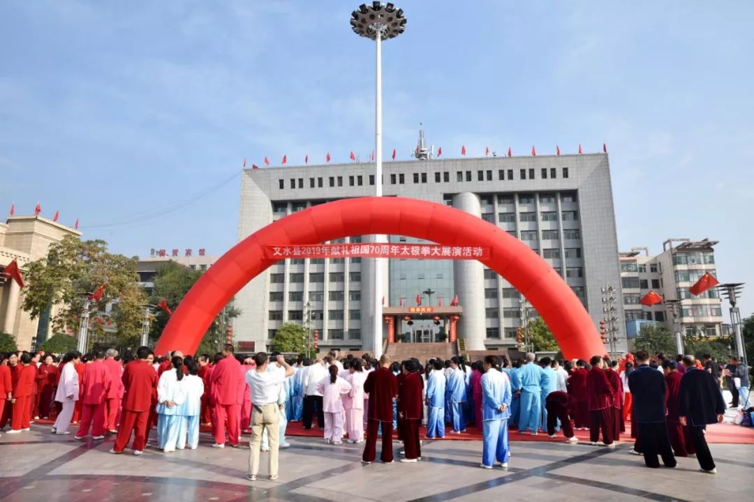 9月28日,由中共文水县委宣传部、县总工会、县卫生健康和体育局、县老年体育协会主办,县武术协会承办,县太极拳研究会协办的2019年献礼祖国70周年太极拳大展演在市政广场举行。展演在铿锵优美的太极锣鼓表演中开始,来自城乡各地的26个太极拳协会辅导站600余名会员依次展演了国标42式、杨氏49式、杨氏26式、武当太极13式、简化24式太极拳和太极八法五步、太极刀、太极剑、太极扇、太极拂尘等项目,博得现场近千名观众阵阵热烈的掌声。广大武术爱好者通过太极拳大展演的形式,以弘扬中华民族传统武术,表达和抒发爱国、爱党、爱家乡的情怀庆祝新中国成立70周年。
