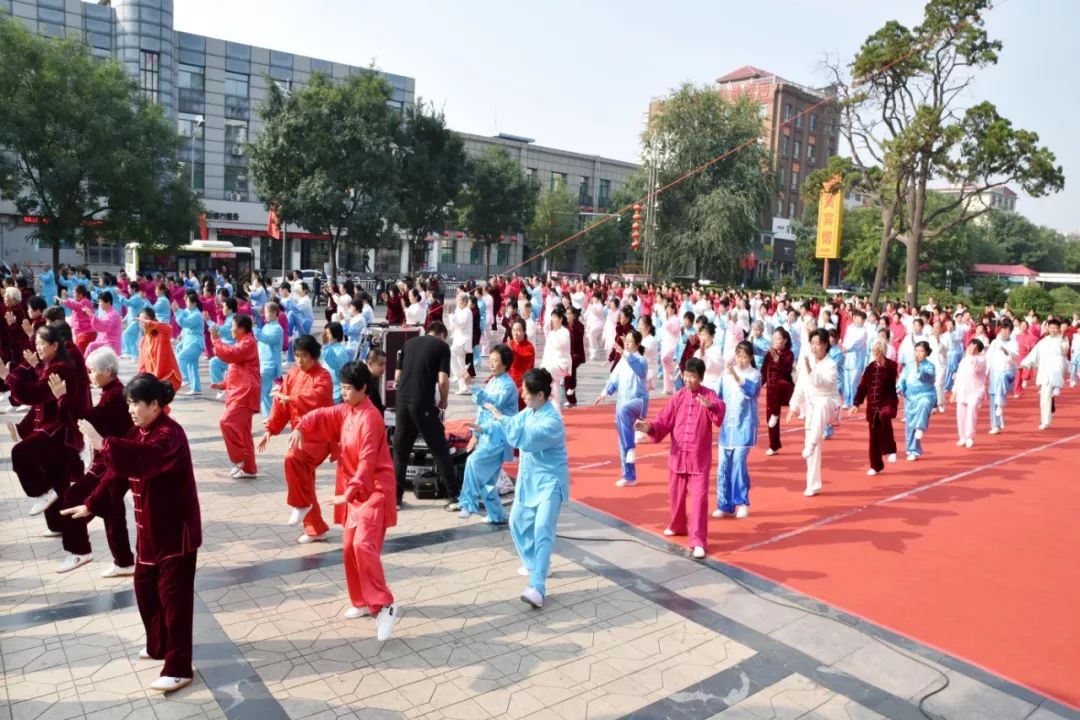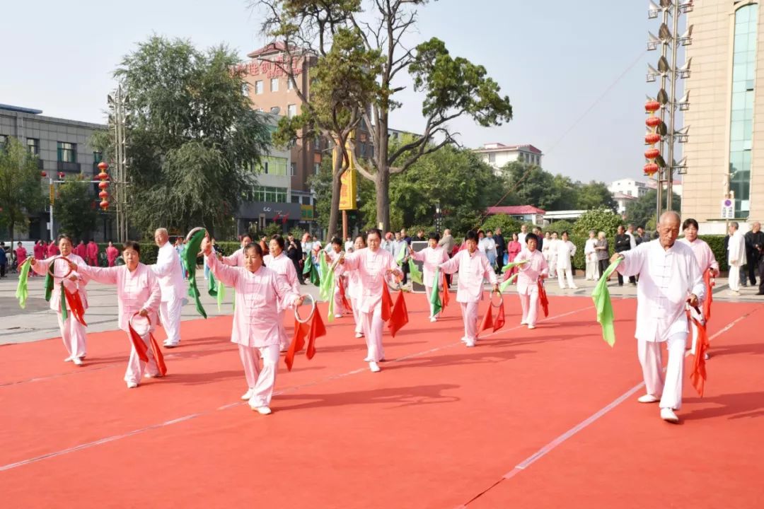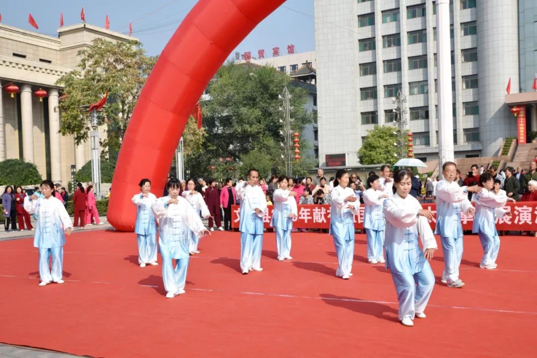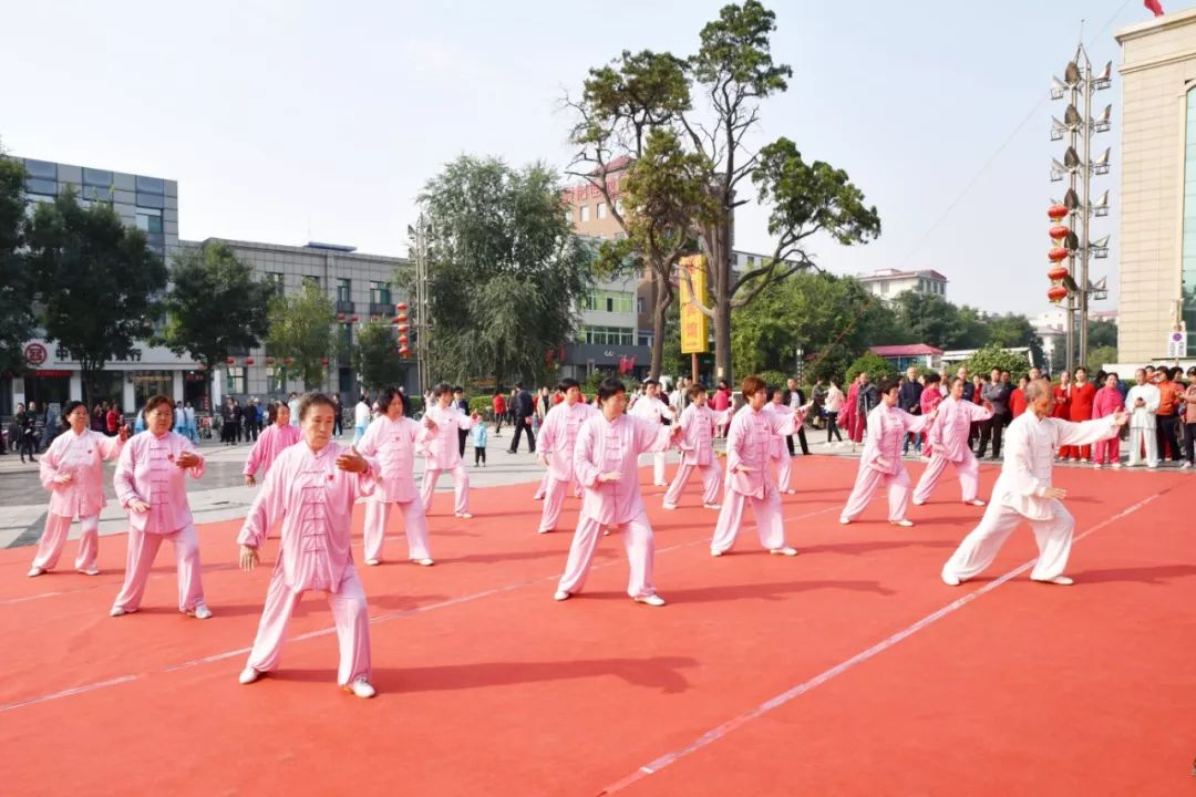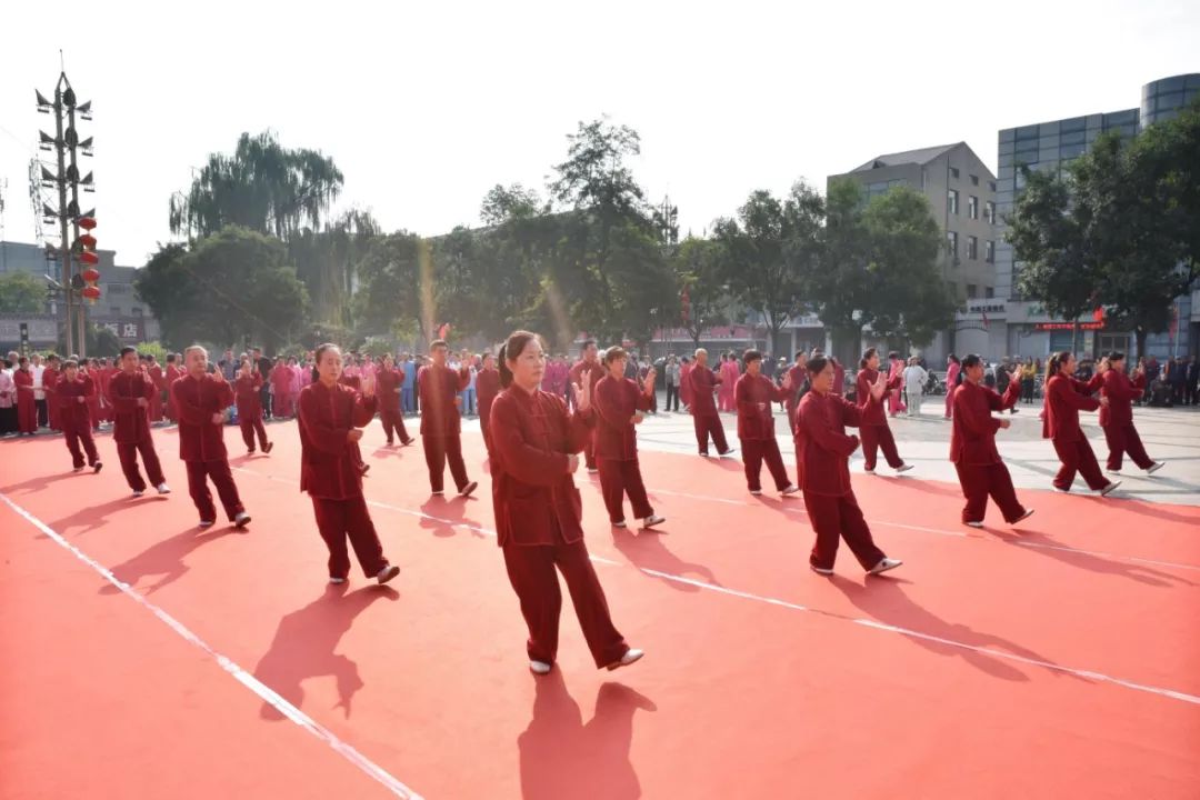 9月28日,由中共文水县委宣传部、县总工会、县卫生健康和体育局、县老年体育协会主办,县武术协会承办,县太极拳研究会协办的2019年献礼祖国70周年太极拳大展演在市政广场举行。展演在铿锵优美的太极锣鼓表演中开始,来自城乡各地的26个太极拳协会辅导站600余名会员依次展演了国标42式、杨氏49式、杨氏26式、武当太极13式、简化24式太极拳和太极八法五步、太极刀、太极剑、太极扇、太极拂尘等项目,博得现场近千名观众阵阵热烈的掌声。广大武术爱好者通过太极拳大展演的形式,以弘扬中华民族传统武术,表达和抒发爱国、爱党、爱家乡的情怀庆祝新中国成立70周年。