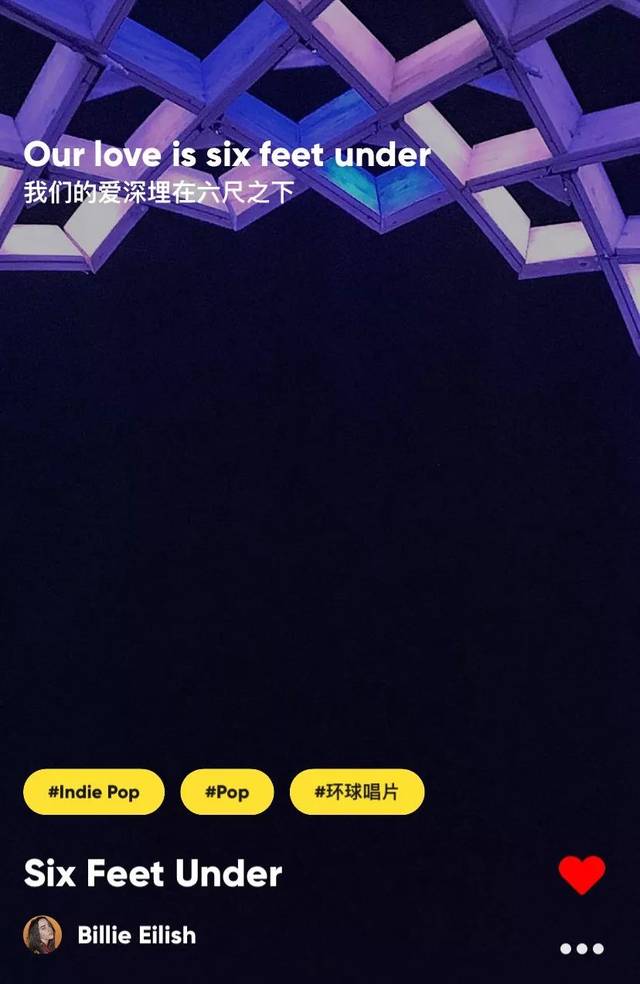 碧梨还没有大火之前,MOO音乐就给我推荐了她的代表作《Six FeetUnder》,这首歌里的碧梨,声音悲伤又空灵,让人过耳不忘。▼