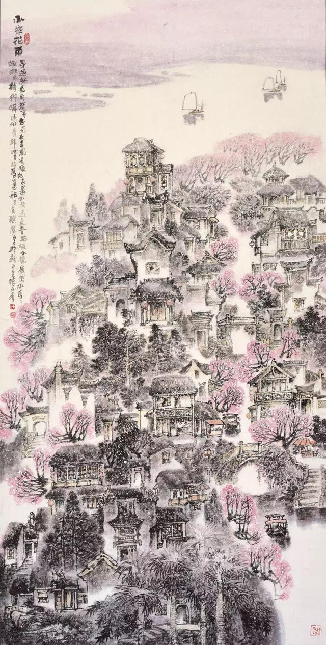 《水乡花雨》(180cm*90cm)陈志青 新西兰基督城
