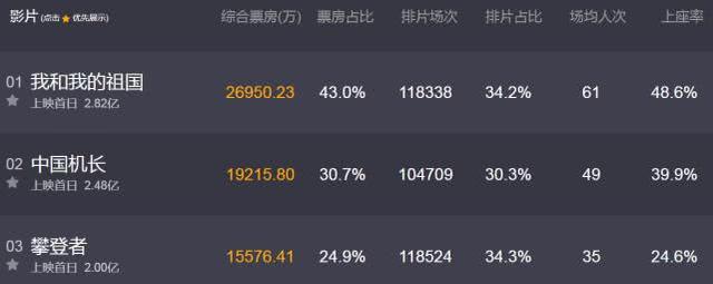 《我和我的祖国》票房夺魁早在预料之中,毕竟有“包场”这个天然优势是其他大片不能比的。前面也上映了很多主旋律影片,但那些作品都是小打小闹,这部才是重点献礼大片,其意义跟十年前的《建国大业》是一个等级的。该片首日票房狂轰2.82亿以上,吸金力猛不猛一目了然,这几天的票房冠军它蝉联应该是没悬念了。