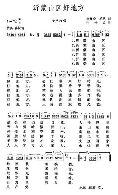 《沂蒙山区好地方》是上个世纪60年代在全国广为流传的一首歌曲。2012年,词作者之一李堂全为此歌曲添了新词,2015年录音收入《苦菜花开闪金光-贾堂霞山东风格歌唱作品专辑》,由中国唱片深圳公司出版。