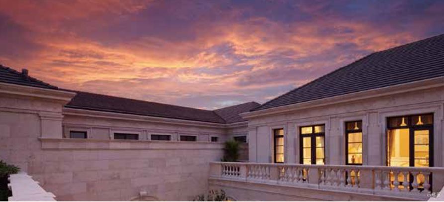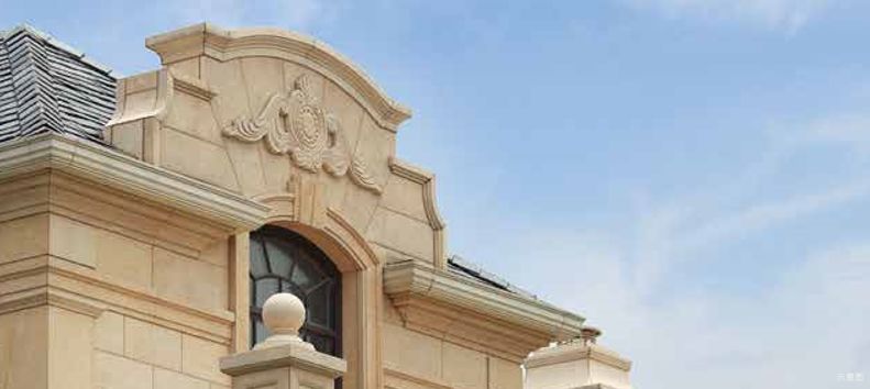 通过多地考察对比,选用西欧进口葡萄牙米黄石,以求得到更加天然的肌理和经得起风雨洗练的色调质感……