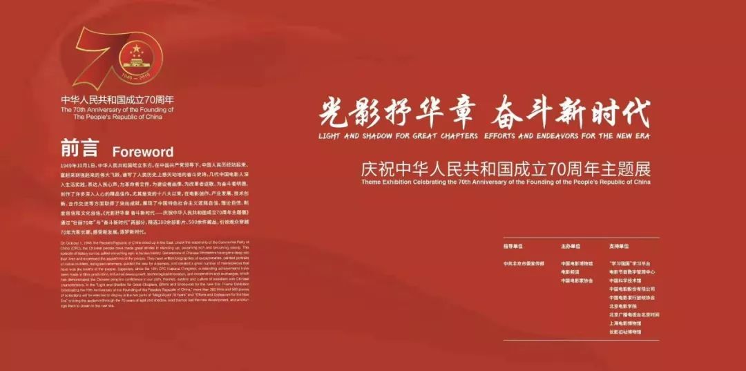 电影频道与中国电影博物馆等单位共同主办的《光影抒华章 奋斗新时代——庆祝中华人民共和国成立70周年主题展》,突出展示了党的十八大以来中国电影事业取得的历史性成就,让观众线下了解发展中的中国电影史。