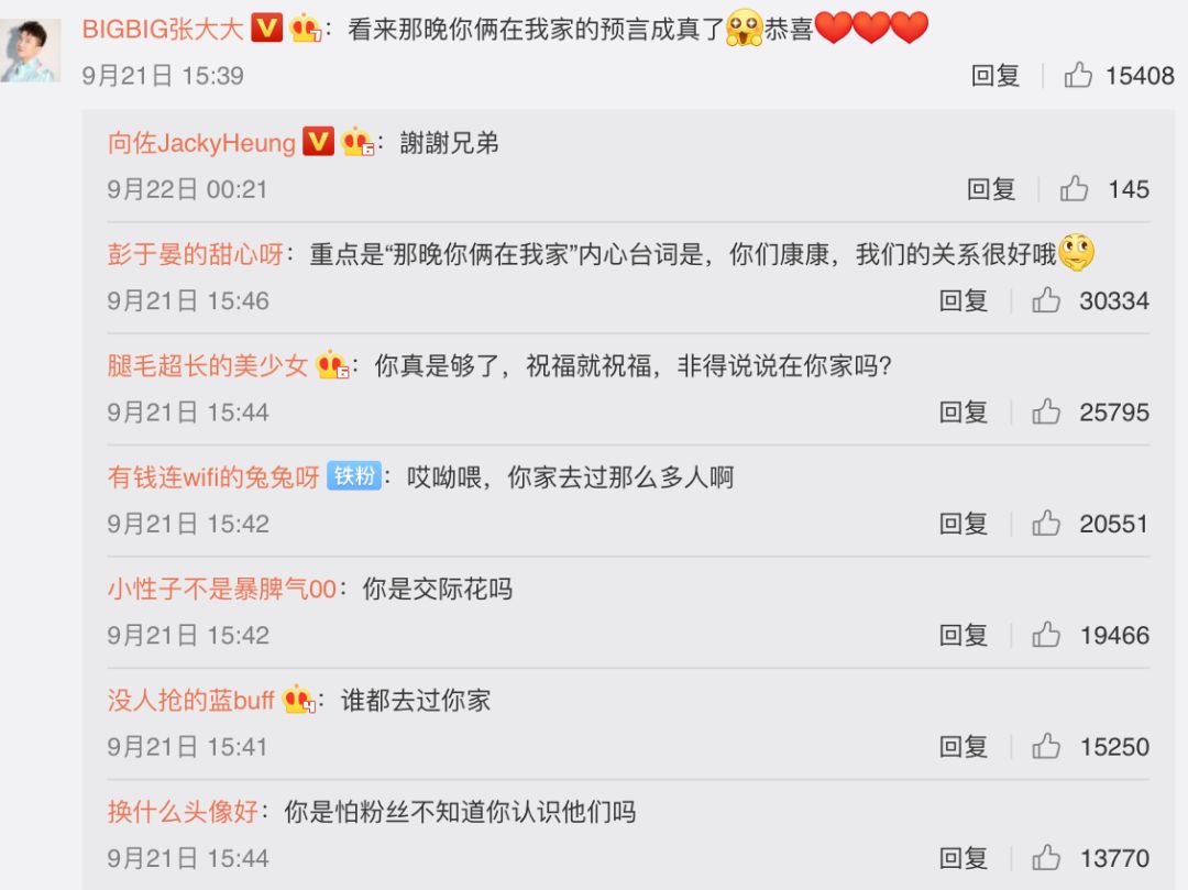 好人缘还成了张大大炫耀的资本,一句假装不经意的吹嘘被网友瞬间戳破。在向佐公布喜讯的微博下面,张大大的评论翻车。
