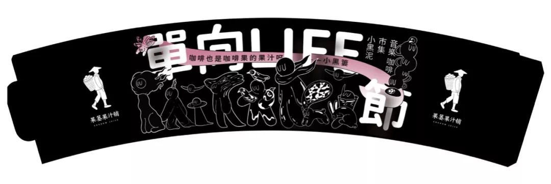 果篓果汁铺参加市集的原因很简单,因为主理人说:咖啡也是咖啡果的果汁呀。本次市集,果篓的饮品包装将会换上Life节同款视觉杯套——“小黑篓”杯套。