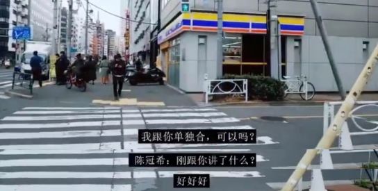 陈冠希带着妻女一起到日本游玩,正好碰上斗鱼某位主播,在日本街头直播买伞,主播立马上前和陈冠希打招呼。