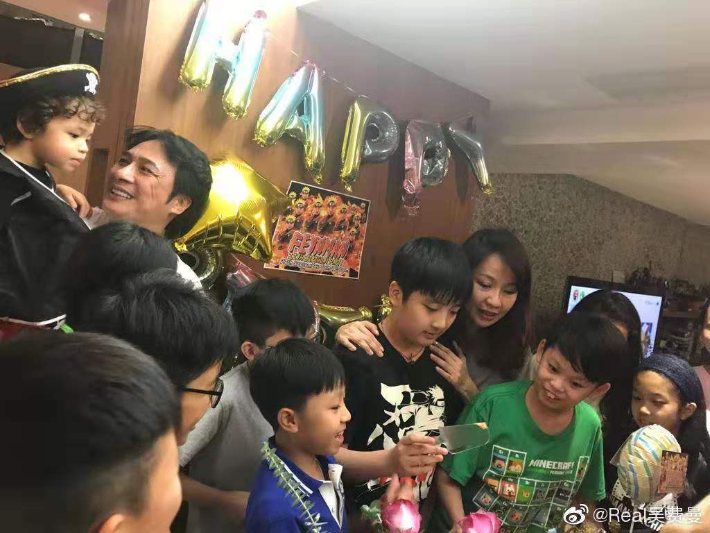 原标题:费曼晒11岁庆生照,妈妈王丽萍罕见露面,吴镇宇意外