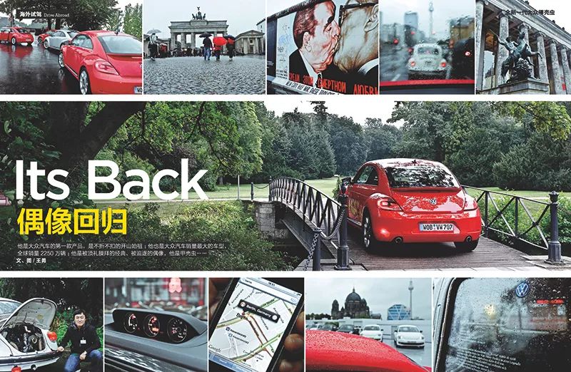 有幸参加全新一代甲壳虫的全球试驾活动,作为最后一批试驾媒体,来自中国的媒体记者得到了从柏林自驾全新甲壳虫前往沃尔夫斯堡的“最高礼遇”,全程近300公里,其中有一段路程是著名的德国A2高速公路,不限最高速,这段高速公路修于上世纪30年代,横贯德国东西,双向六条车道。开始时由于雨天路滑,我一直控制着车速,后来天气转晴,我在高速最里面的高速车道上撒了一下野,最高车速飙到了230公里/小时。最难忘的是有机会试驾了一辆50年代的第一代甲壳虫,发动机在后边,手挡的,有3个前进挡,很开心能赶上这个伟大的时代。