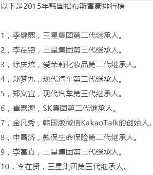 2015年前十名都是财阀家族的继承者,难怪韩国要拍《继承者们》