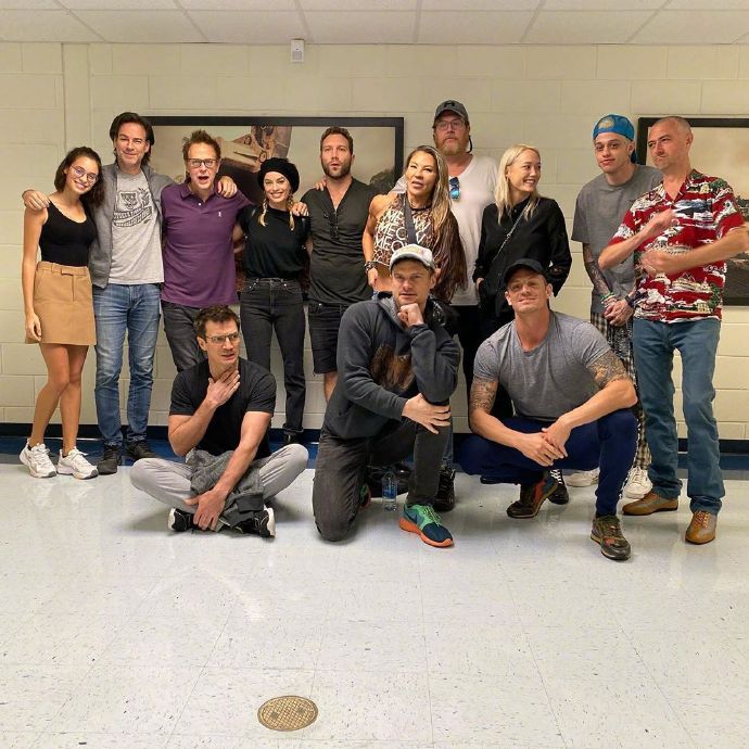 而詹姆斯·古恩也在社交媒体晒了一张图片并配文:《自杀小队2》剧组及“螳螂妹”庞·克莱门捷夫一起看《小丑》。