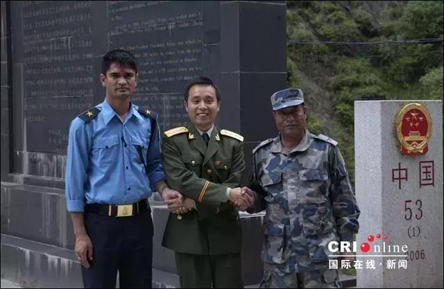 ▲中尼边境双方边检人员友好交流
