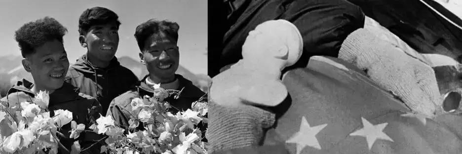 三位登山英雄的合影(左图,从右向左)