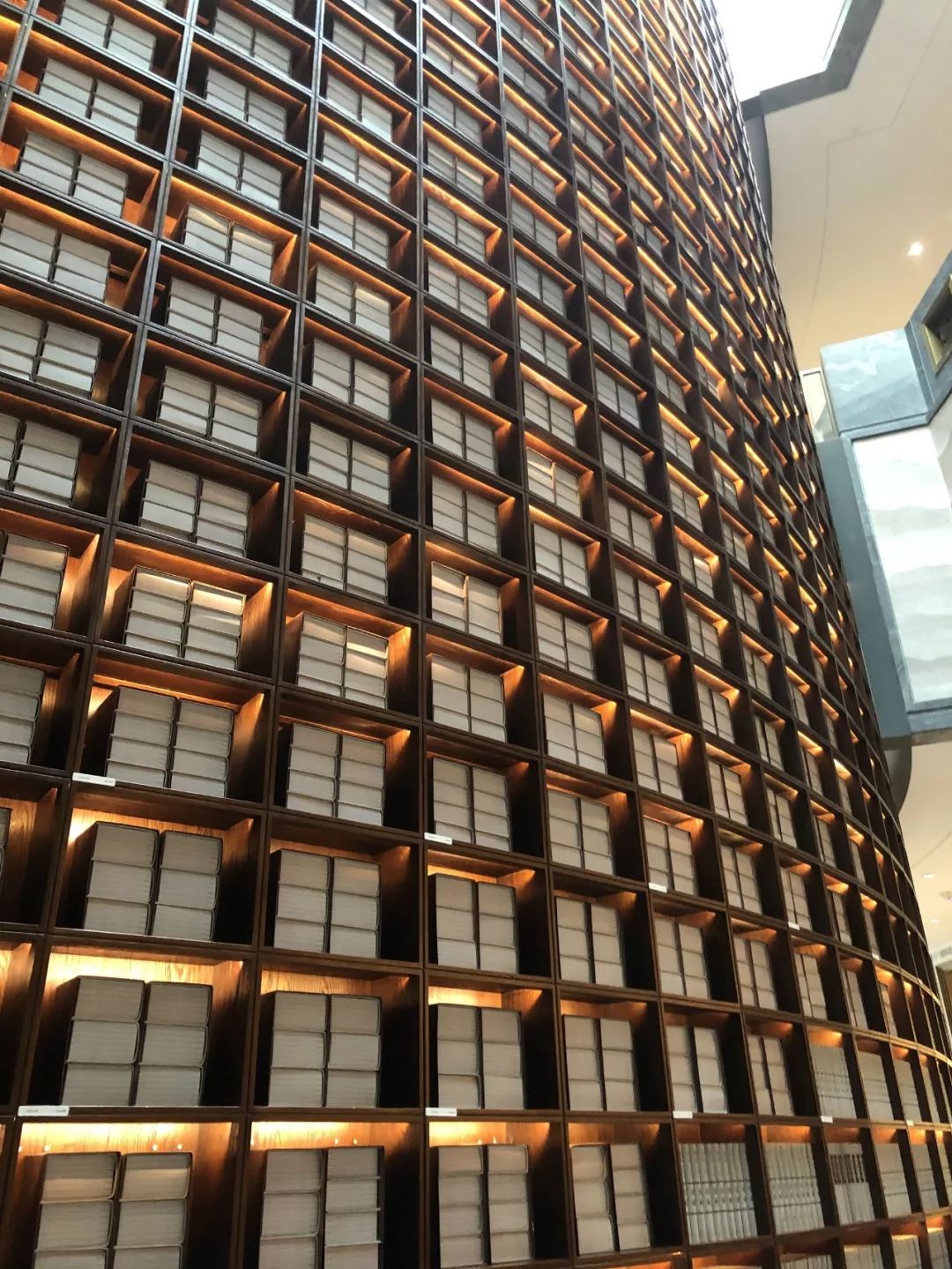 除此之外,博物馆序厅外设置有32米高的“圆筒书墙”,博物馆内特设“时习阁”图书馆,这些规模较大的真实木质书墙将摆放大量的博物馆学术研究与征集得来的图书,既能让观众感受文化的厚重,发挥博物馆的教育功能,也有利于博物馆自身文化品牌的塑造。
