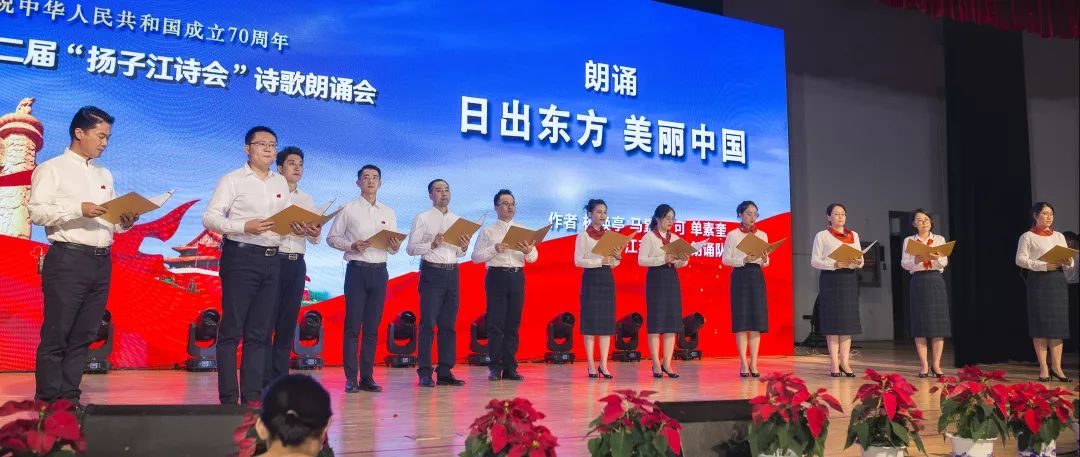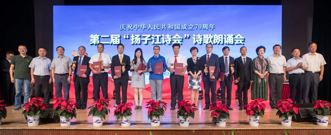 最后,全体人员合唱《歌唱祖国》,嘹亮的歌声飘荡在会场上空,第二届扬子江诗会诗歌朗诵会完美落幕。
