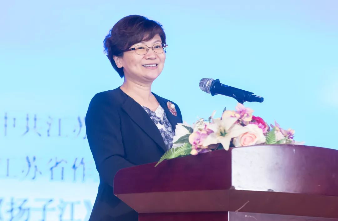 徐宁在朗诵会上致辞。她说,历史上,江苏南秀北雄的山川形胜、吴韵汉风的人文特质,孕育了张若虚、张籍、李煜、范仲淹、唐伯虎、郑板桥等古典诗词大家,以及刘半农、叶圣陶、宗白华、朱自清、俞平伯等众多新诗开拓者,熔铸出无数脍炙人口、流传千古的著名诗词。当代,新中国成立70年翻天覆地的社会生活变迁;改革开放40多年中国特色社会主义建设的伟大成就,江苏全面建成小康社会、推动高质量发展走在前列的生动实践,吟咏出一首又一首礼赞新生活、讴歌新时代的壮丽诗篇。包括诗歌创作在内江苏当代文学在全国有着重要而广泛的影响,江苏当代作家以其整齐的阵容、强大的实力始终位列全国前列。诗言志、歌咏言。今晚,让我们再一次徜徉在诗歌的海洋中感受诗韵之美,在读诗听诗的过程中回望辉煌历史、展望光明未来,激发实现中华民族伟大复兴中国梦的奋斗热情、高昂干劲。