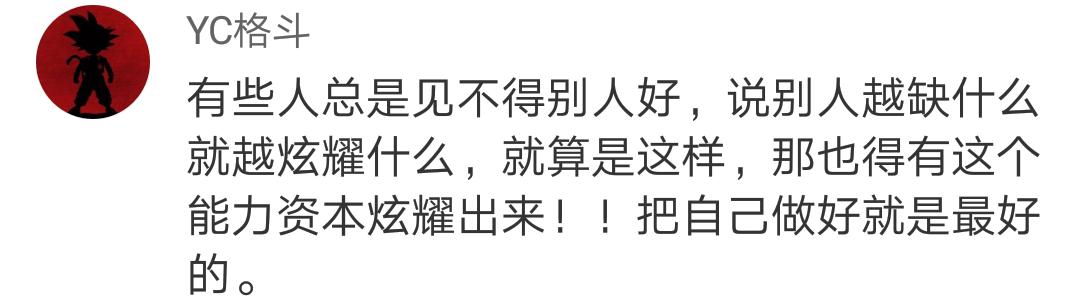 他补充道:“3、炫耀什么?越是缺什么就炫耀什么?土鳖?我:我凭我自己的努力和奋斗才有了今天的生活,我凭什么不能炫耀。说到土鳖这个问题,有钱有可能会是土鳖,但是没钱一定是土鳖,因为经济实力可以开阔人的眼界。4、你这么有钱,为什么不为社会做贡献?真是人渣?我:我有钱我做不做贡献是我的事,凭什么道德绑架?还有你怎么知道我没为社会做贡献?我一年花着上百万的费用(我培养着很多交不起训练费拳手)为中国培养优秀的职业搏击运动员,我们常年披着国旗为国而战你说我没有做贡献,做贡献是敲着键盘就能做到的?做人别那么刻薄,要学会看到别人的优点,不要以貌取人,不然永远都是井底之蛙。”