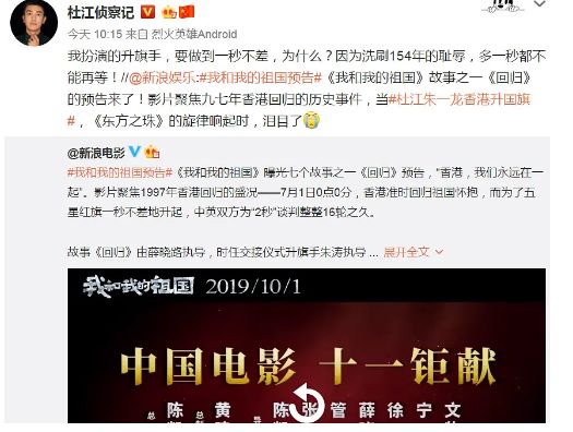 两部国庆档大片《我和我的祖国》、《中国机长》,正好杜江都是主演!