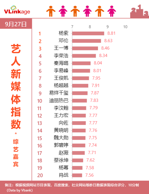 原标题:Vlinkage榜单 | 9月27日网播数据及艺人新媒体