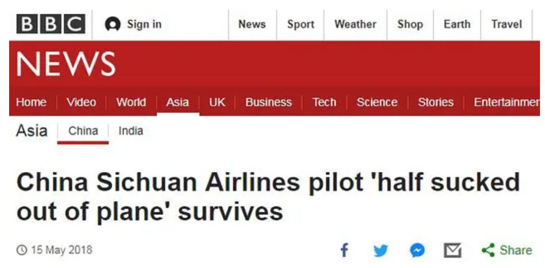 ■ 2018年5月14日,川航3U8633航班在万米高空驾驶舱挡风玻璃破损,机长和全体机组人员临危不乱,成功紧急备降,完成了一次“史诗级”紧急处置,震惊世界。