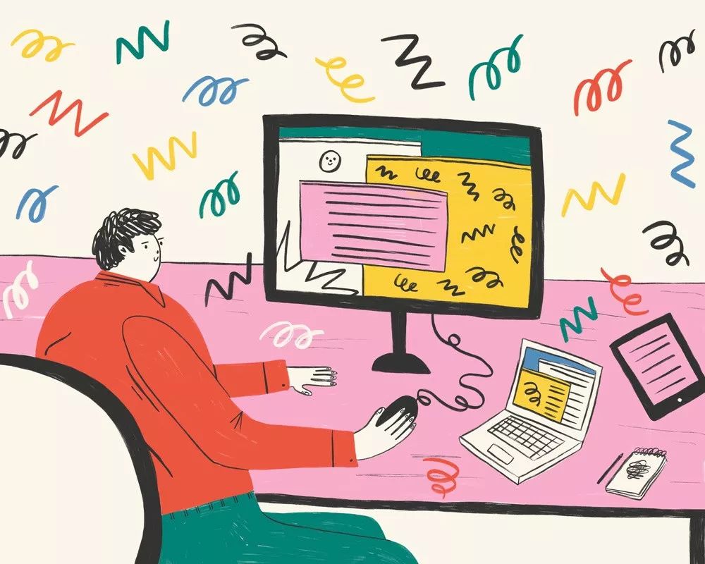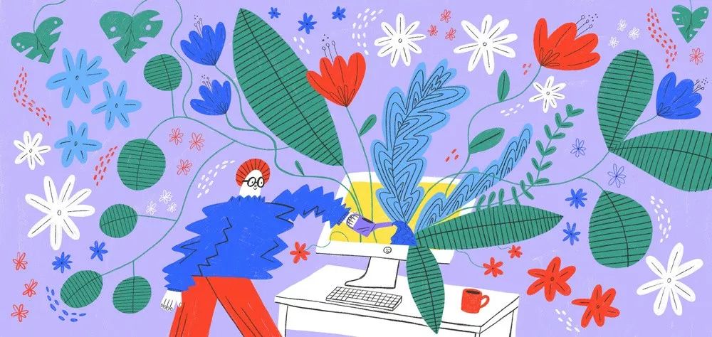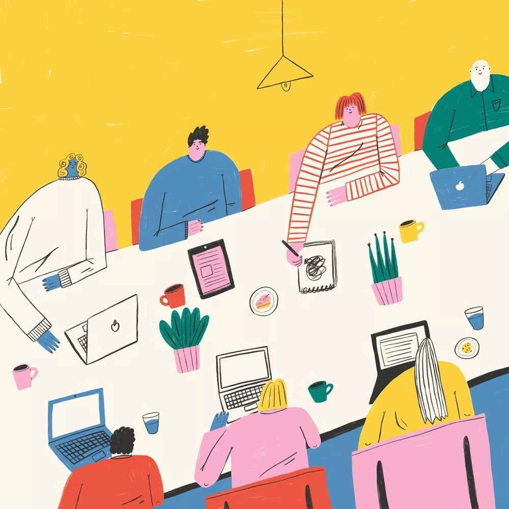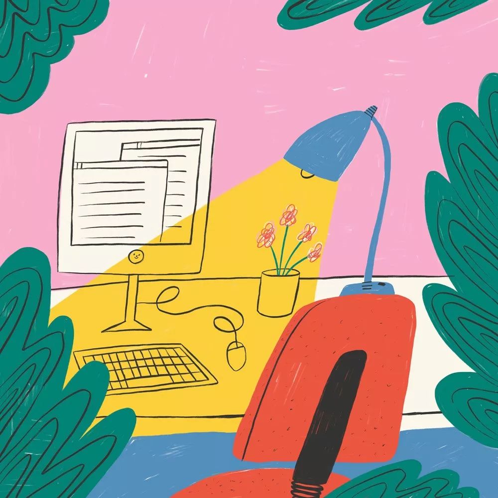在她的插画中,枯燥的办公事务一一都被刷上了粉嫩明亮的颜色,似乎能让无聊的工作变得可爱。