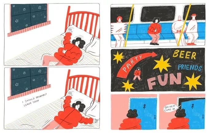 原创的插画集 Missed Connection 得到了今年德国的汉堡册书奖,Tess Smith以80页插画的形式来表达一个看起来是伤感的主题,年轻人来到大城市生活所经历过的孤独和困难。