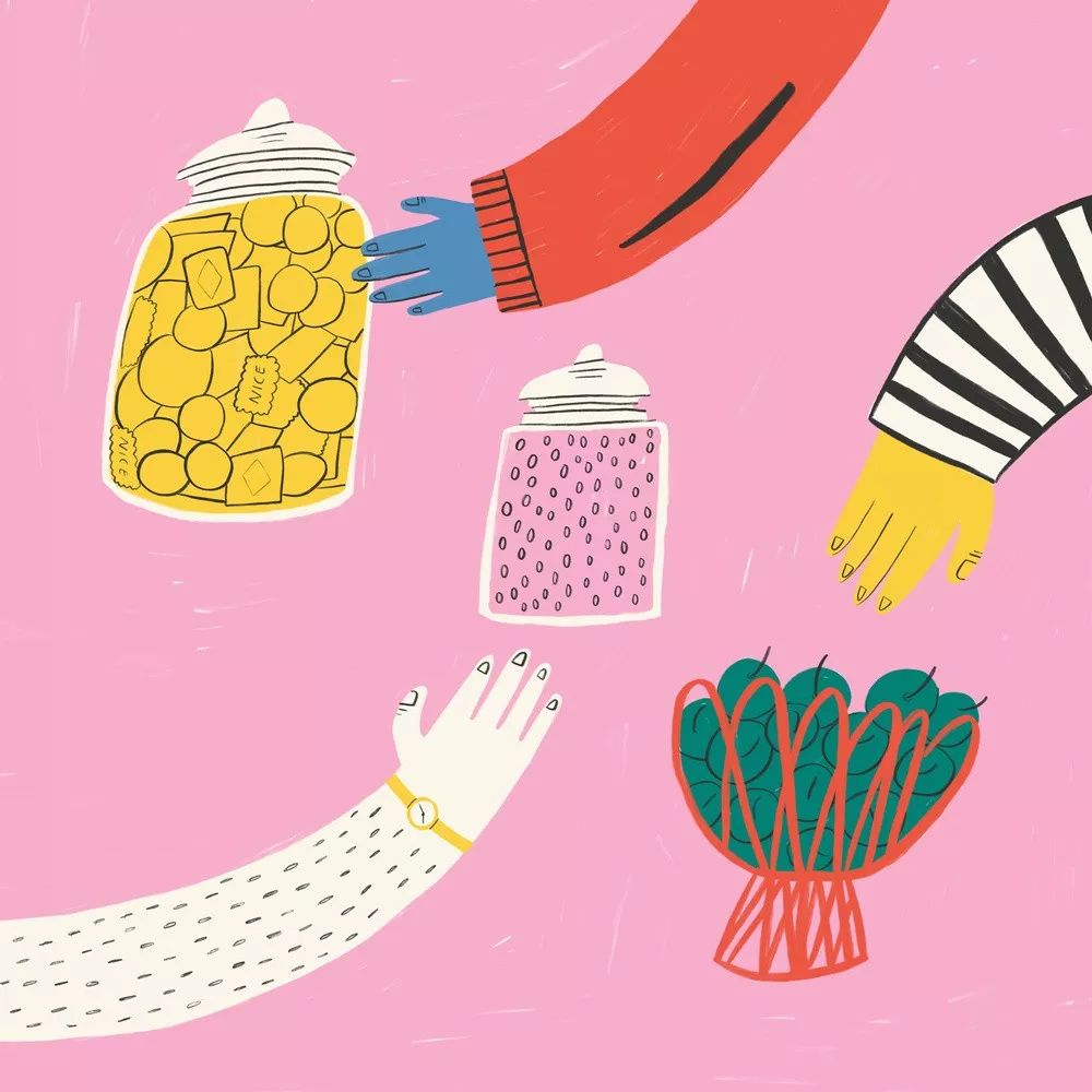 即使是商务合作的生活类杂志和文章,她所创作的插画作品风格明亮活跃,用色也十分可爱,插画人物的脸上总是挂着温暖的笑容。