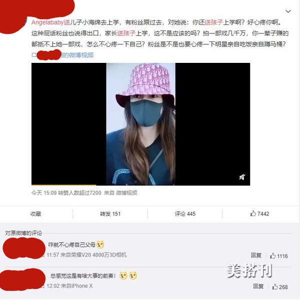 网络上顿时就涌现各种批评的声音。小编觉得此次baby这波黑也是有点冤枉了,但是粉丝言行,爱豆买单,只能说baby也是无奈。不过话说回来,明星只是一份职业,为人父母多陪陪孩子也是义务,baby关心爱护小海绵,提前结束行程回来送他上学,也是应该的。这次现身也未见黄晓明的动态,不免又有网友好奇开始“搞事”,“黄晓明不送孩子吗”?这似乎也印证了二位可能离婚的消息。
