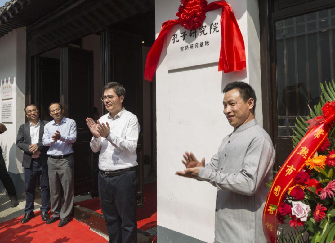 ▲市委副书记、政协主席韩卫兵与孔子研究院学术交流部副部长路则权为“孔子研究院常熟研究基地”揭牌。