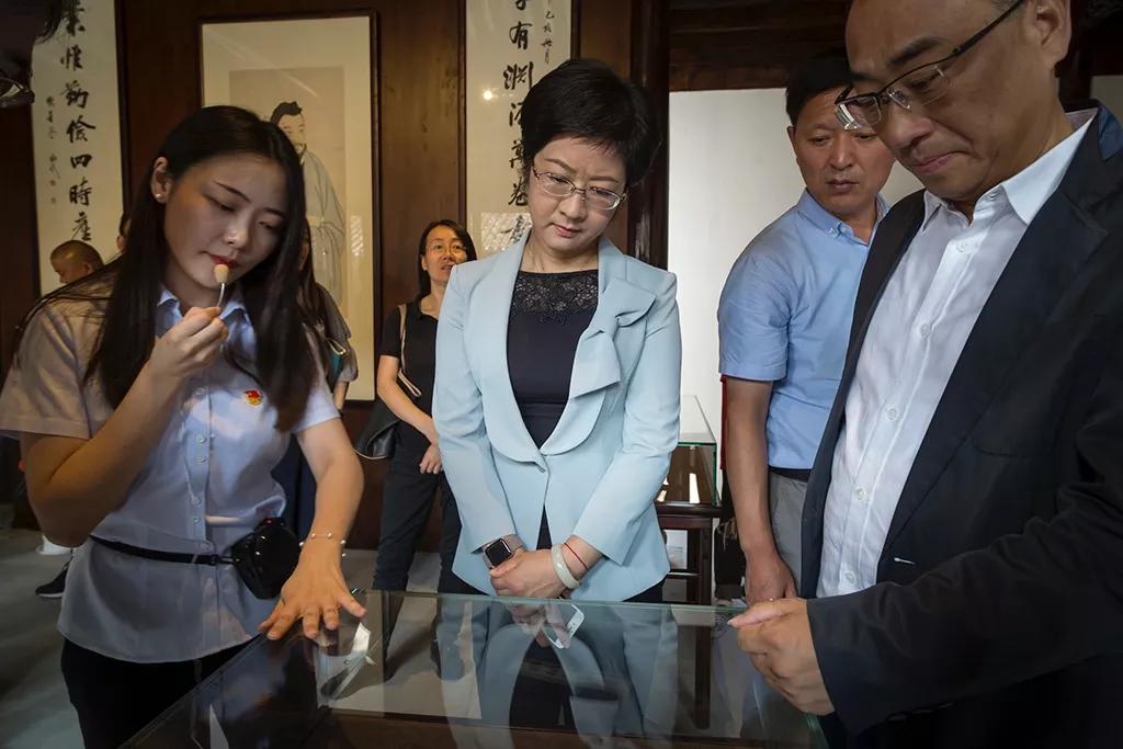 ▲市文体广电和旅游局局长顾玉芬汇报言子旧宅修复开放筹建概况