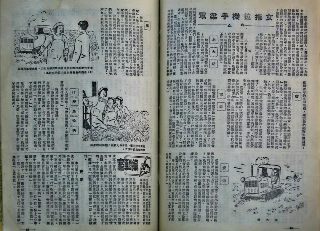图为中国青年杂志《女拖拉机手梁军》报道