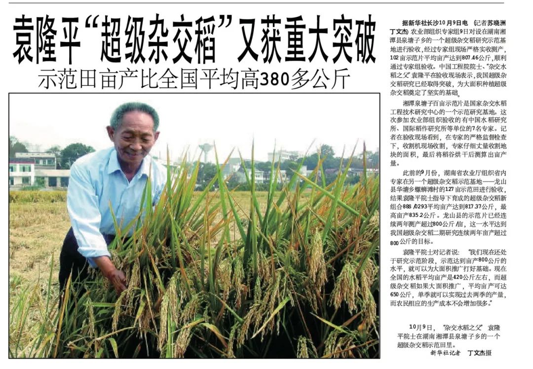 《袁隆平“超级杂交稻”又获重大突破》报道