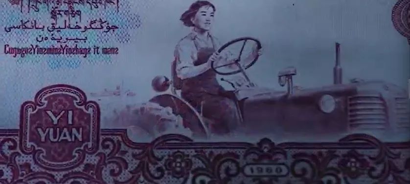 图为一元钱上以梁军为原型的女拖拉机手