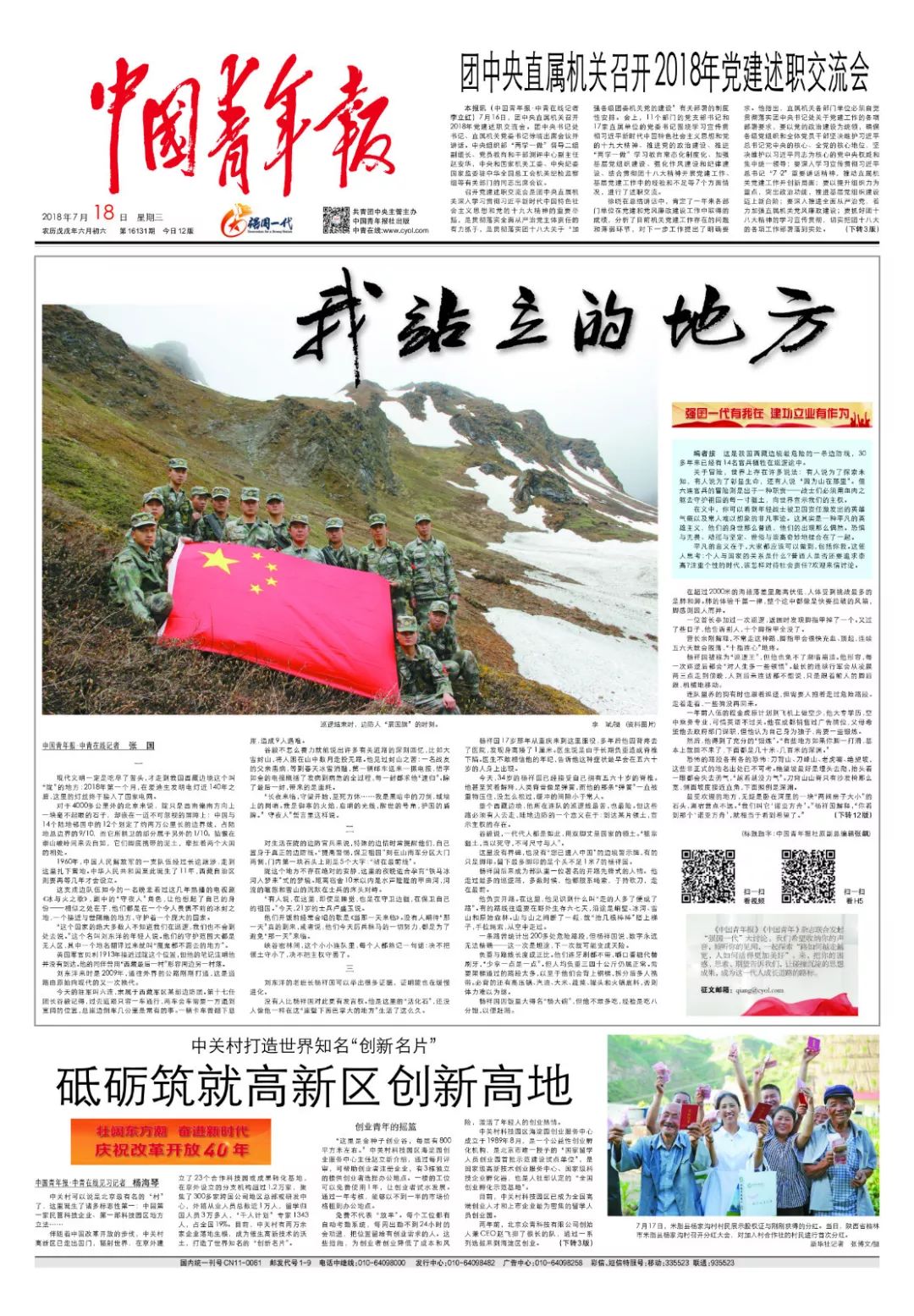 图为中国青年报《我站立的地方》报道