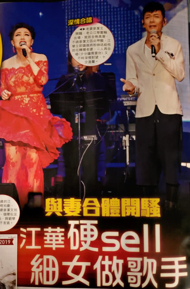 今年6月,在慈善筹款晚会上,江华与麦洁文“买二送一”带着女儿上台唱歌,一家三口声势夺人。