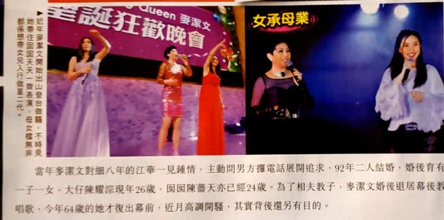 不过,24岁的天天被指表演服装太老气,与64岁的麦洁文站在一起像姐妹多于像父女,因此这次一家三口首次同台并未引起太大反响。