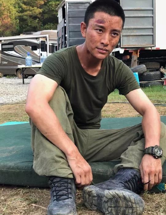 曾经那个爱漂亮的亮亮不见了,现在的他,不仅剃了平头,在40多度的天气里蒸烤了120多天,还风里来雨里去,不是一脸油彩就是满身泥。