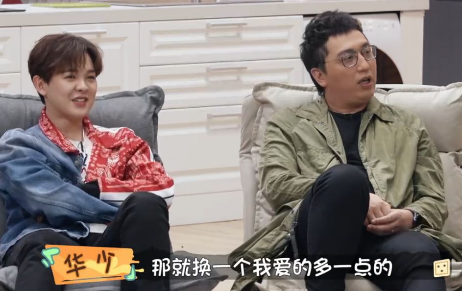 还在入座时故意以主持人的口吻说“大家坐”,明明这个节目的主持人是朱丹,是调皮的华少没错了。