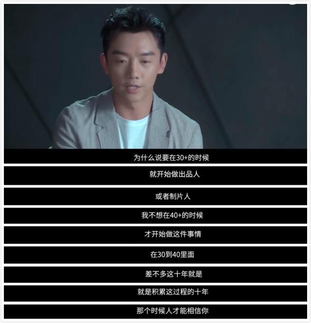 为什么会在这么年轻的时候就开始当出品人、制作人?因为他觉得30-40这十年是积累的过程,也可以积攒一些经验,未来别人也才敢用你,相信你。