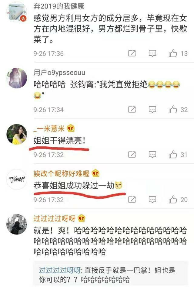 目击打脸现场的女方粉丝们,纷纷表示:悬着的心终于可以放下啦!恭喜姐姐成功躲过一劫……