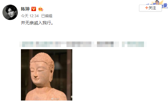 特别在意自己颜值的傲娇陈坤这下坐不住了,赶紧出来辟谣。“我家可没有亲戚在圈内”,这意思就等同于“我可没这么丑的亲戚”