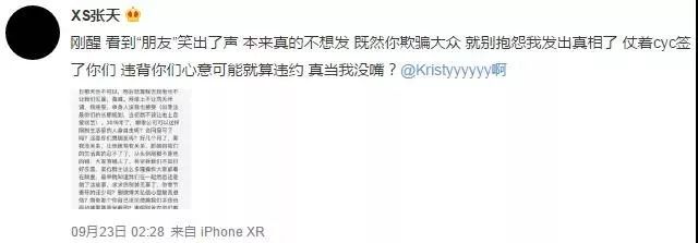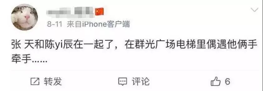 也就在张天经纪人曝出张天抑郁时,陈奕辰又在小号发了这么一条微博。